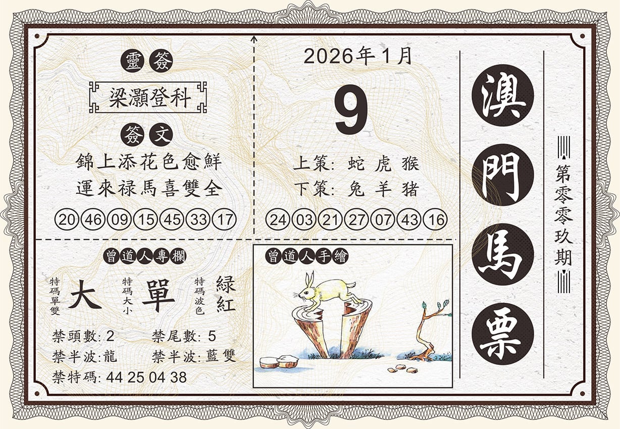 003期单:牛兔猪+双:鼠狗马猴开:09鸡准